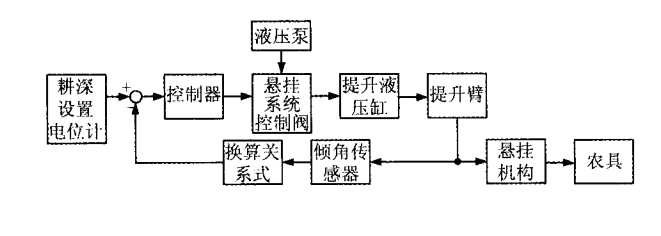 與傳統機械式測量法不同的是,基于傾角傳感器的耕深測量不僅結構簡單安裝方便,而且受機械機構影響小,測量精度高。由于農機懸掛機組機械的幾何結構相對穩定,并且在每一個不同的耕深狀態下,機組的提升臂分別對應一個不同的水平傾斜角度。故農機懸掛機組的耕深與其水平傾角存在固定的關系式。因此,通過傾角傳感器測得角度的電壓數據并結合懸掛機組部件的幾何關系,便能得出耕深與測量電壓間的關系。當在駕駛操作員發出調控指令后,懸掛系統自動調節提升臂的水平角度,并且傾角傳感器會一直對此過程中傾斜角度進行測量,然后反饋到控制系統中,直至傾角傳感器的測量數據達到與設定耕深所對應的電壓數據為止,最終完成對耕深的控制。