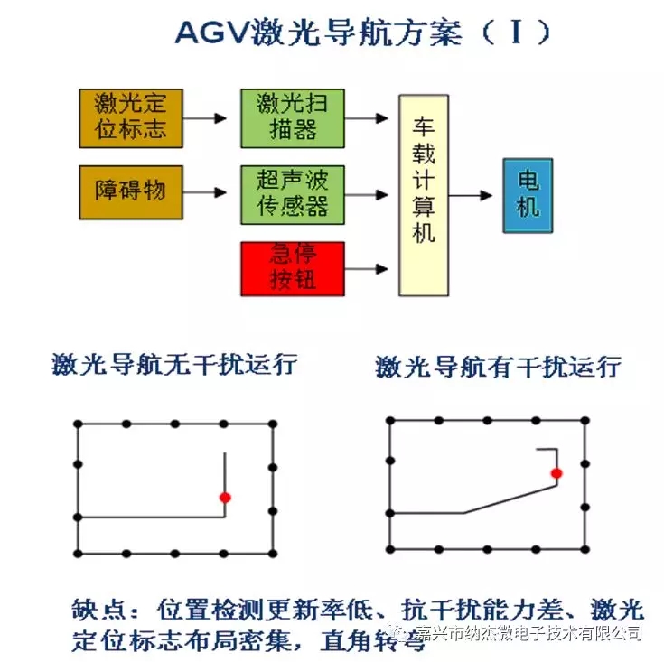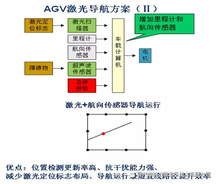 傳統(tǒng)激光AGV智能小車方案中,通過激光掃描器掃描激光定位標(biāo)志從而確定AGV小車在應(yīng)用場景中的位置,通過內(nèi)置導(dǎo)航地圖精確控制一臺(tái)或多臺(tái)AGV小車運(yùn)動(dòng),但其存在一定缺點(diǎn),激光導(dǎo)航精度受到激光定位標(biāo)志布局影響,動(dòng)態(tài)性能較差,在AGV運(yùn)行過程中,輪胎有時(shí)會(huì)打滑,導(dǎo)致AGV小車方向偏離。